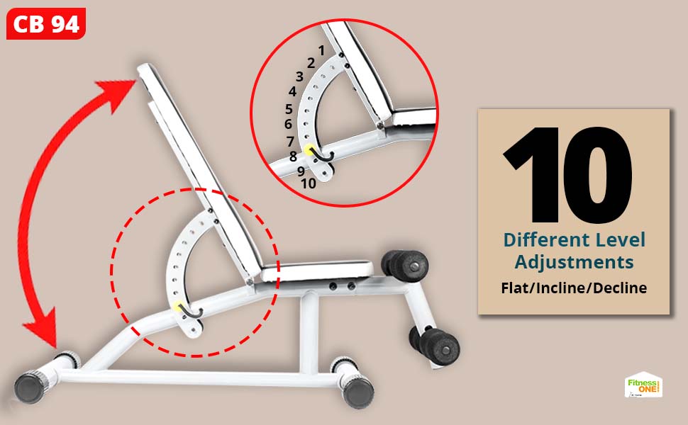 - ✅【10 LEVEL ADJUSTABLE DESIGN WITH AUTOMATIC LOCK】With 10 backrest positions, customize your workout and get the most out of our multipurpose exercise bench. The built-in automatic lock system ensures quick, secure adjustments and maximum safety during intense lifts. Designed with a triangular steel frame, the PROPEL FitnessOne CB 94 delivers stability and durability – ideal for home gym setups.