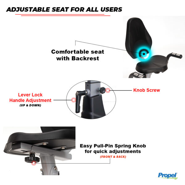 Stay active, fit, and comfortable with the Propel FitnessOne HR 75i Dual Action Recumbent Exercise Bike for Seniors and Adults. Engineered for home fitness, this bike combines comfort, safety, and performance in one sleek design.